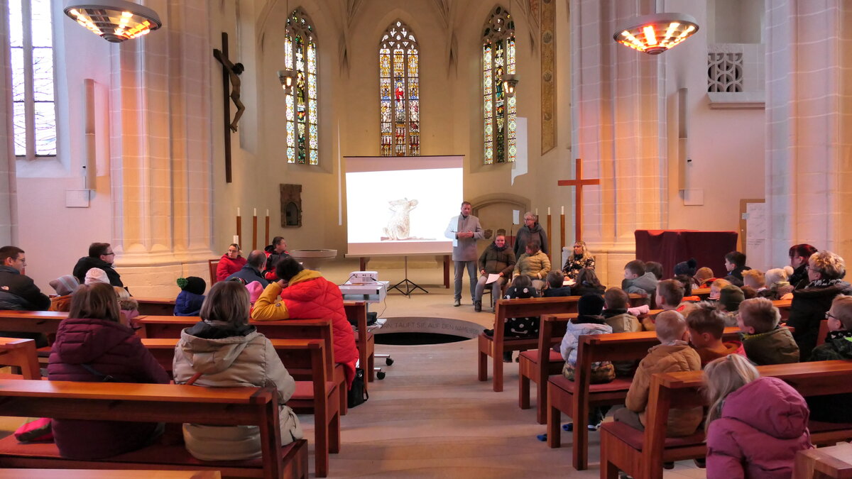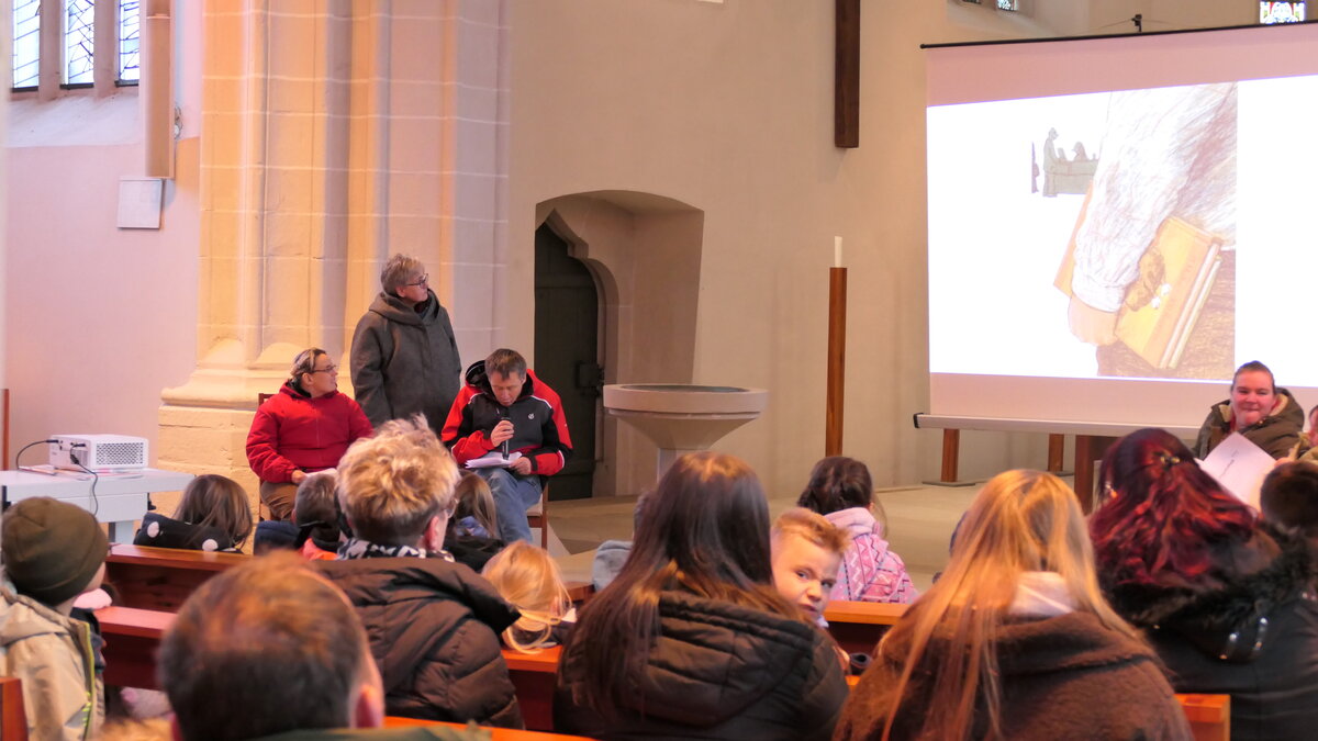 Die kleinen Zuhörer folgten aufmerksam den Abenteuern von Fuchs, Maus und Hund Klitschko, die durch das Lesen zueinanderfinden – und lernten ganz nebenbei, warum sogar Hühner einem Fuchs das Lesen beibringen können. Am Ende gab es viel Beifall – und ein leises Kichern, das durch den Kirchenraum hallte.
