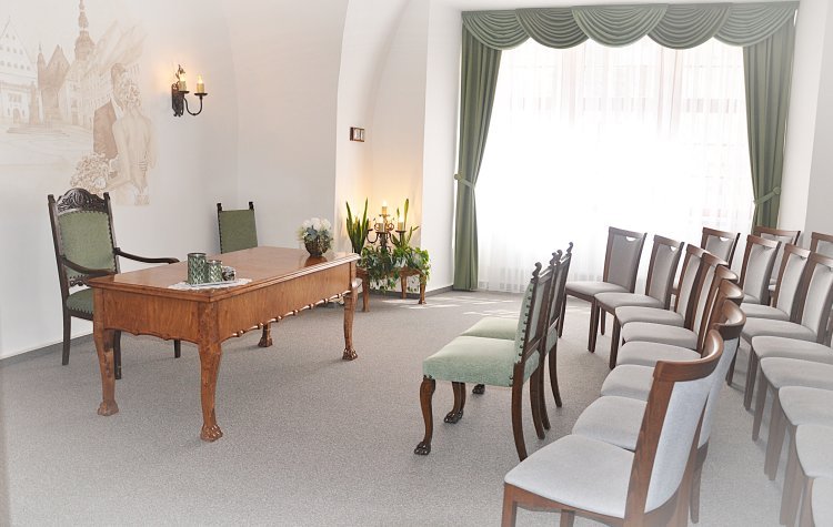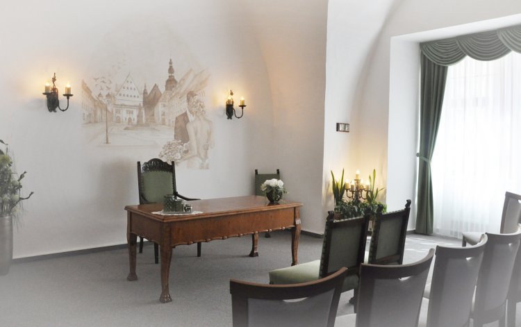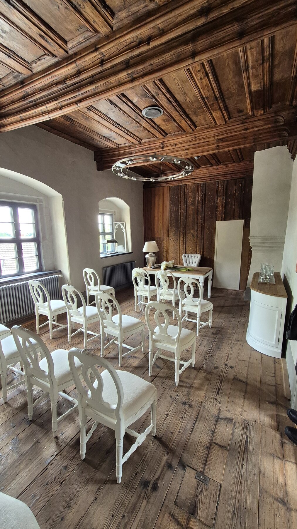 Die mit Liebe zum Detail gefertigten Möbel aus Eichenholz – versehen mit einem warmen Antik-Finish – verleihen dem Raum zeitlose Eleganz und eine behagliche Note. Das „Renaissance-Zimmer“ bietet Platz für bis zu 16 Gäste und ist der ideale Ort für eine intime, unvergessliche Trauzeremonie.