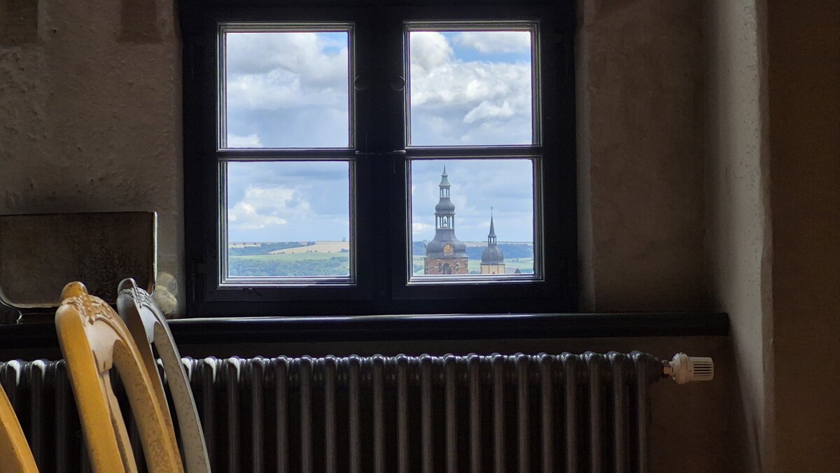 Etwas verborgen, doch voller Geschichte, liegt der zweite Trauraum im ehemaligen Augustiner-Eremiten-Kloster am Annenkirchplatz 3. Hoch oben unter dem Dachstuhl, direkt unter den alten Mönchszellen, befindet sich das sogenannte „Renaissance-Zimmer“. Seine kunstvolle Kassettendecke und der Blick über die Lutherstadt bis hin zum malerischen Süßen See schaffen eine Atmosphäre, die kaum romantischer sein könnte.